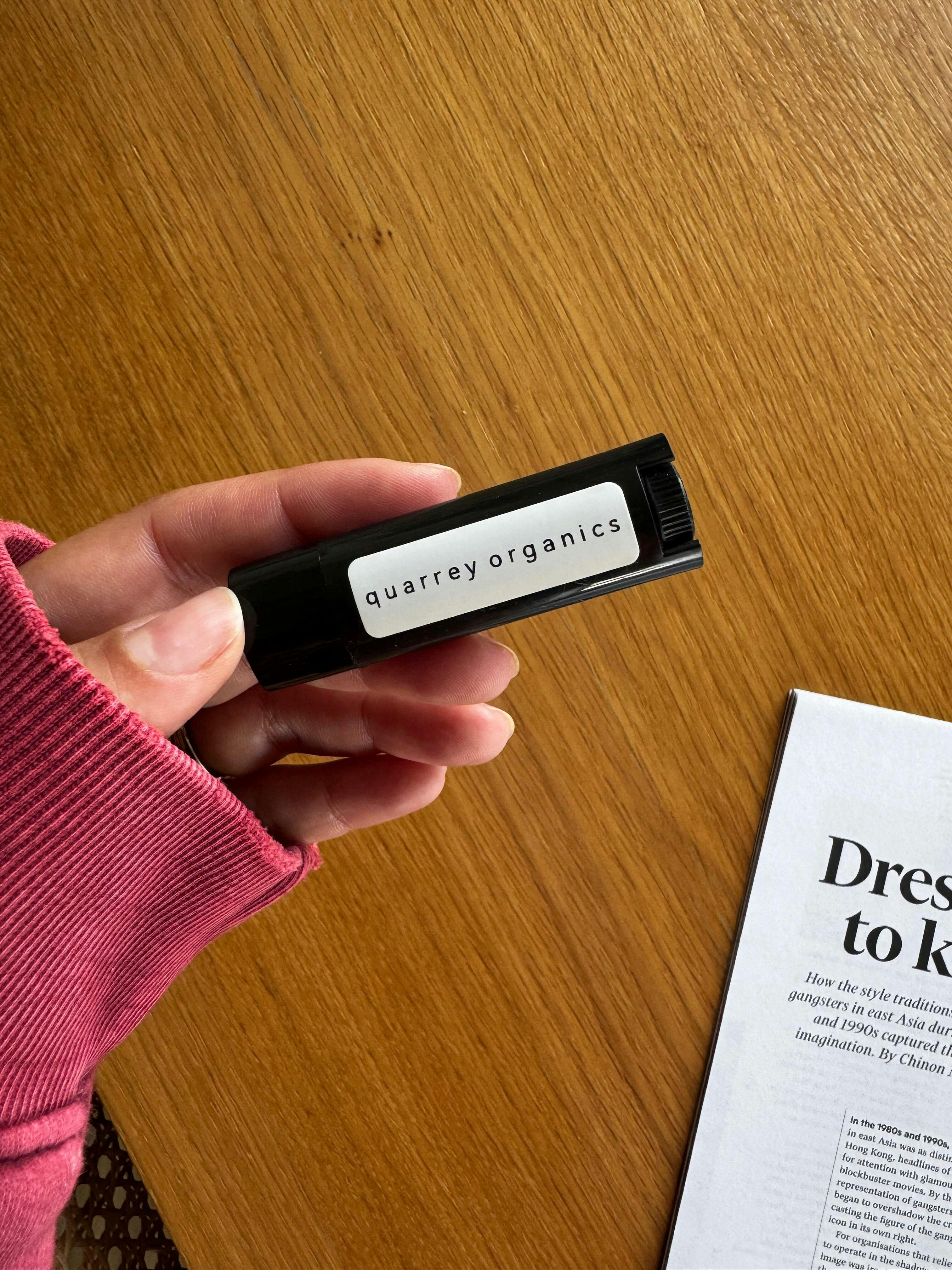 [q u a r r e y o r g a n i c s l i p b a l m is made with 100% certified organic ingredients that are lab tested and third party audited to ensure purity, safety and highest quality standards are met above and beyond.]